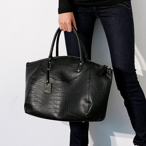• Croc embossed finish and slightly curved opening